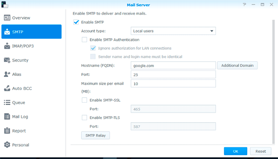 smtp Publicat el 20 juliol 2017 amb 567 × 325 a Accions a fer per restablir www després d’una restauració del synology a la configuració de fabrica.