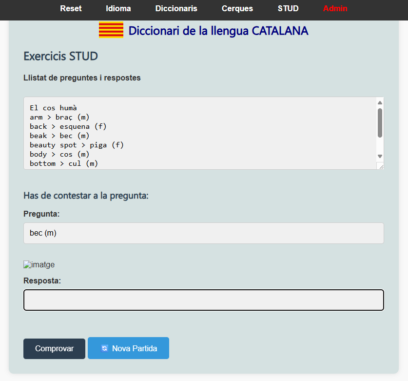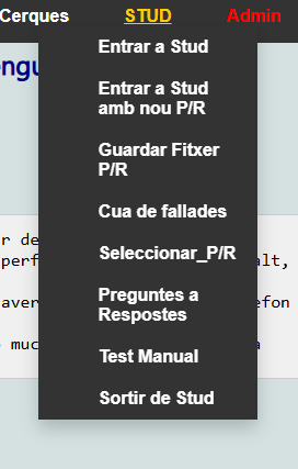 - Quan s’entra a STUD i el Llistat de preguntes i respostes conté elements i l’entrada pregunta es buida, hauria de seleccionar-se automàticament una càrrega aleatòria a l’entrada pegunta. ✅