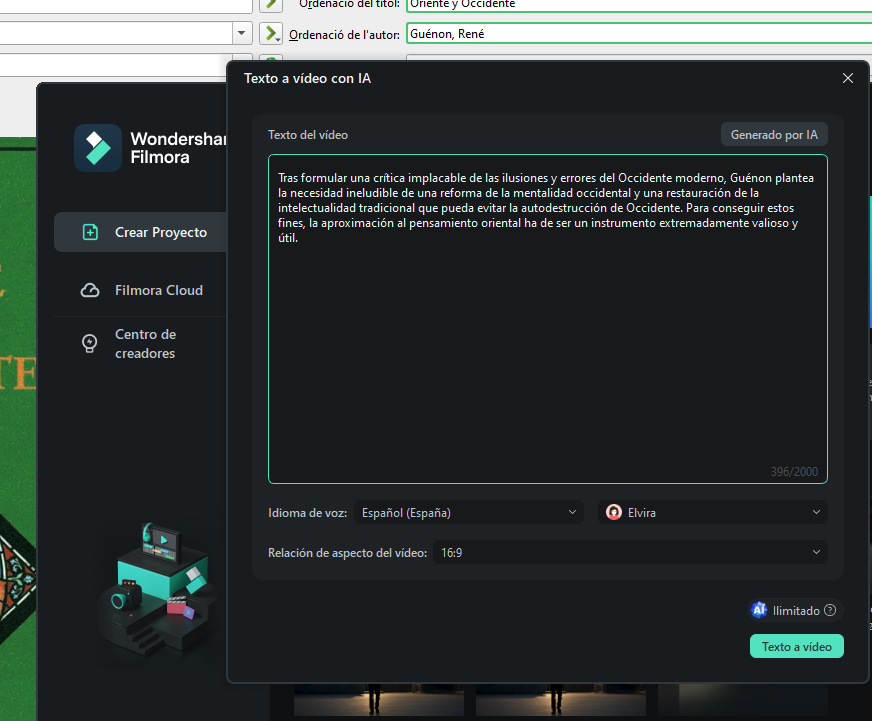Text a video peguem el text i el botó text a vídeo (observar que la veu serà la d’Elvira