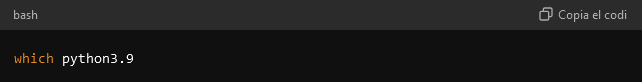- Executa el següent comandament per trobar la ubicació de Python 3.9: