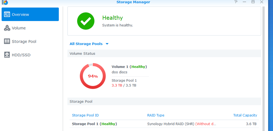 Poso un disc nou a la bahia2 i aquesta és la informació del administrador de emmagatzematge. Es pot observar que s’identifica amb ‘unused driver’. Amb aquest disc es pot crear un volum 2 o sumar-lo al volum 1 que passaria a 3,5+3,5 TB.