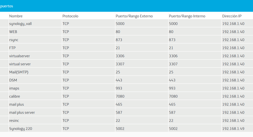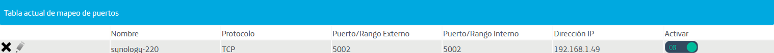 El port 5002 assignarà la ip interna 192.168.1.49 que hem d’haver assignat al synology DS220+
