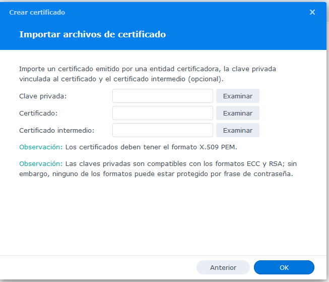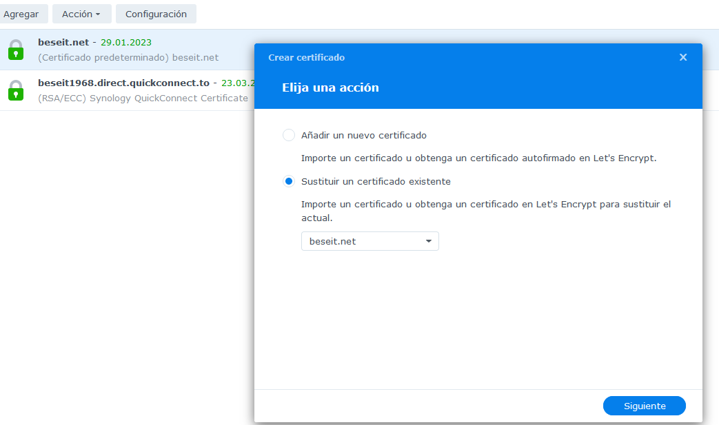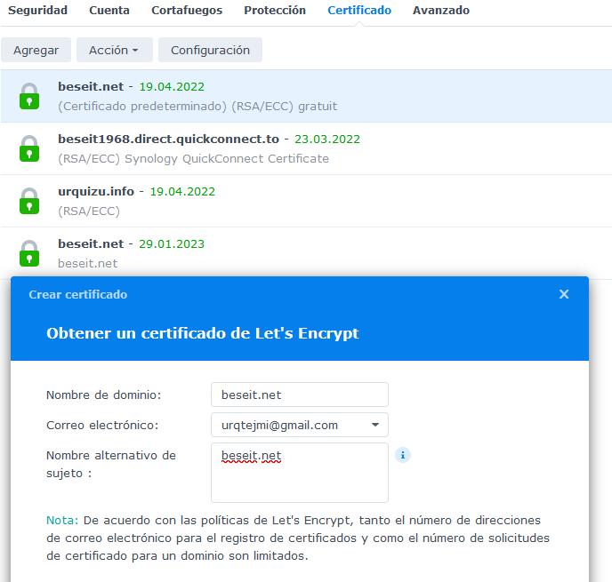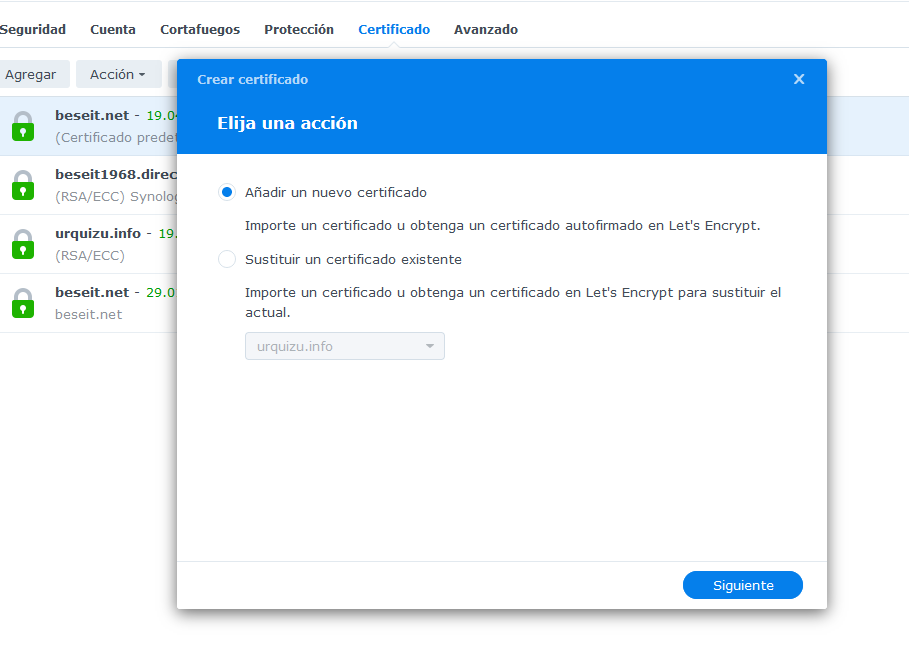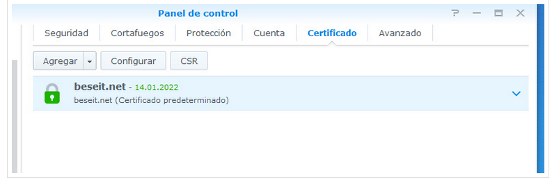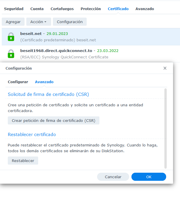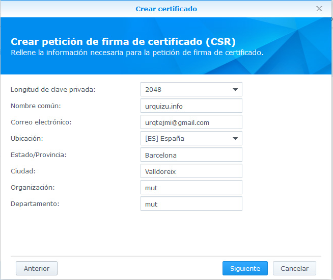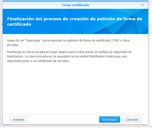 Hi ha que generar un CSR[Sol·licitud de Signatura Certificat] (Synology/panell de control/seguretat/