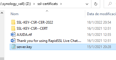 Convé guardar servey.key de forma segura perquè la necessitarem per a futures renovacions del SSL.