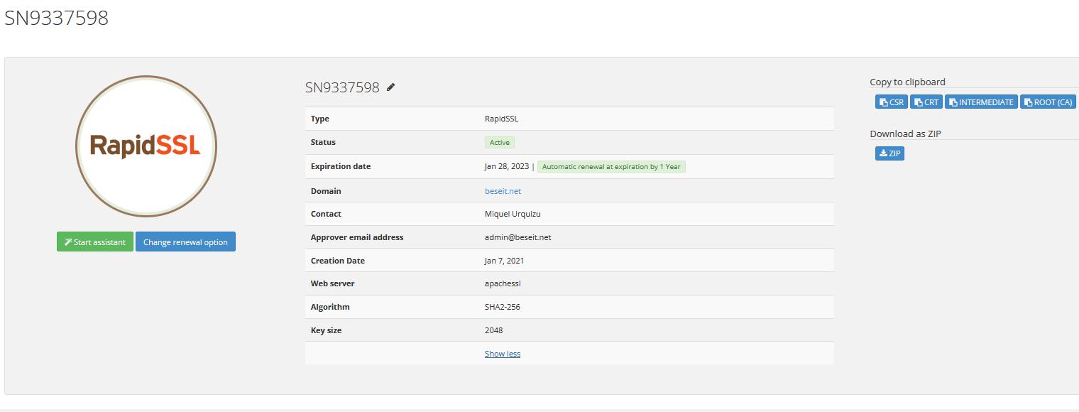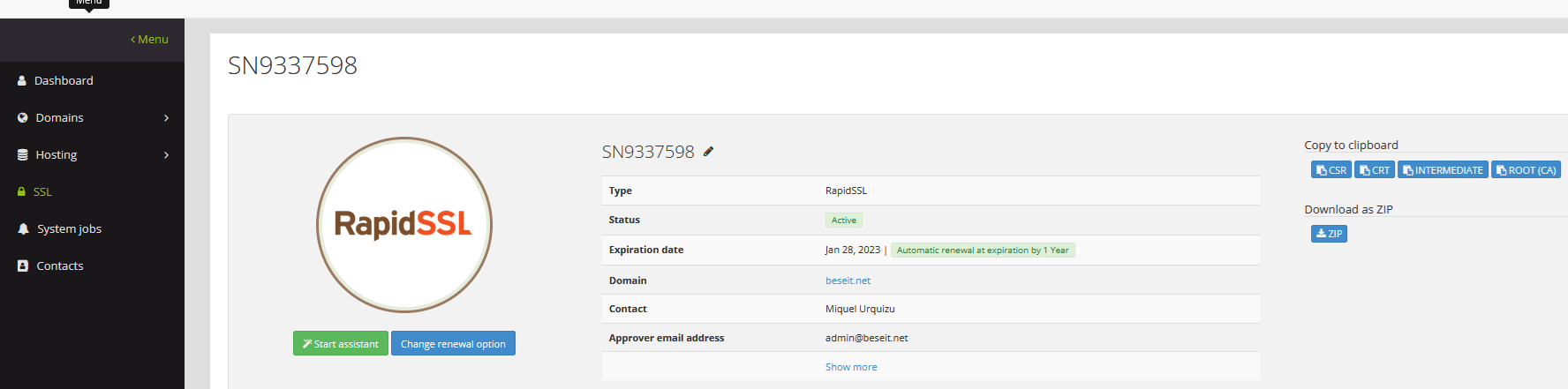 Un cop està renovat al meu proveïdor de domis i SSL veiem: