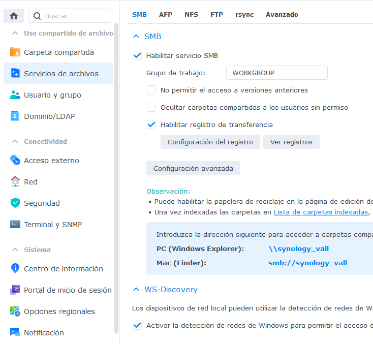 Per crear ubicacions de xarxa al Synology ha que habilitar el servei SMB. Per a mi és un servei basic del servidor.
