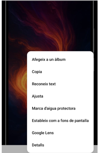 El truc és tenir la foto a la galeria. Premen els tres puntets baix a la dreta ens surt aquest menú