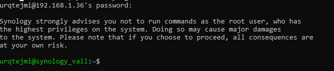 Estem conectats al terminal terminal de synology amb Powershell com root