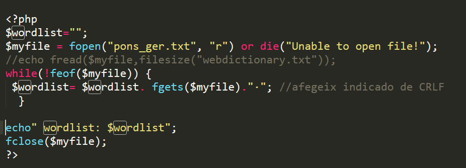 $myfile = fopen(‘pons_ger.txt’, ‘r’) or die(‘Unable to open file!’);// tot el fitxer en una linia sense cr lf