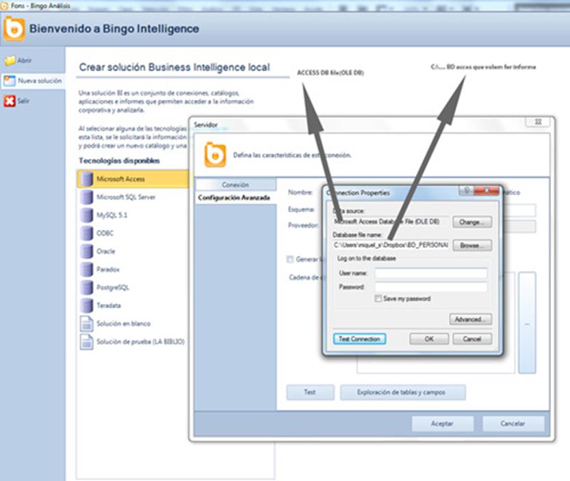 En primer lloc s’ha de definir la connexió: Obrim Bingo i anem a nova solució