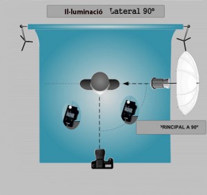 a 180º del focus podem posar un reflector negre per augmentar el contrast o blanc per suavitzar-lo