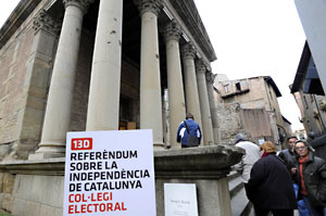 A Vic, sota un cel gris i amb molta humitat, un total de 157 persones havien votat en la primera hora i mitja al principal col·legi dels 9 que hi ha, el del Temple Romà. Per allà hi ha passat l’alcalde, Josep Maria Vila d’Abadal (CiU), que ha avisat que “cal continuar treballant perquè Catalunya decideixi el seu destí [….]