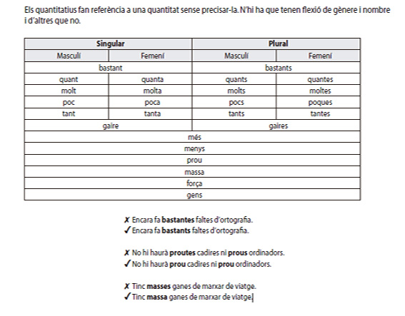 Els quantitatius són uns determinants que indiquen quantitat de manera global o imprecisa. Poden ser variables o invariables, depenent de si tenen variació de gènere i de nombre.