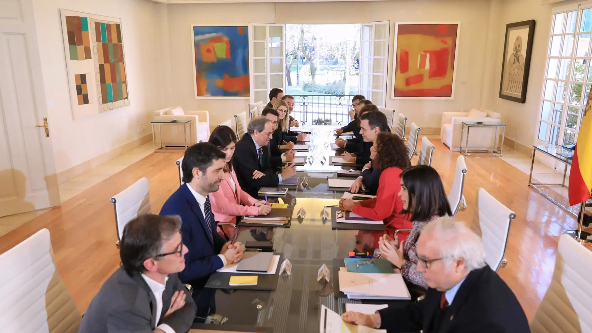 Vista general de la primera reunió de la taula de diàleg entre el govern espanyol i els representants del Govern i el Parlament de Catalunya al Palau de la Moncloa el 26 de febrer del 2020