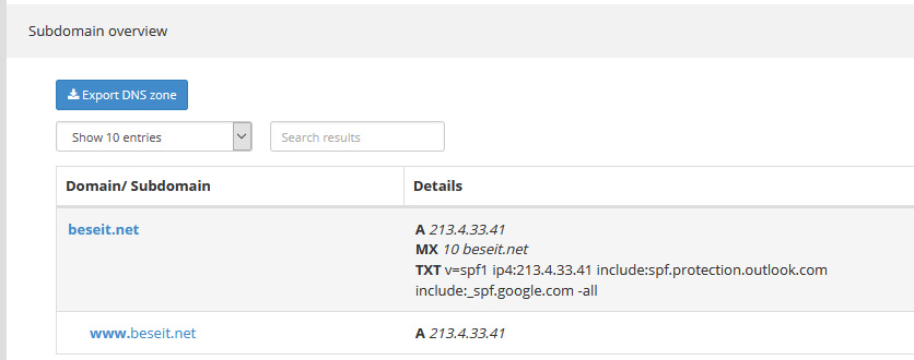 TXT v=spf1 include:spf.protection.outlook.com beseit.net -all