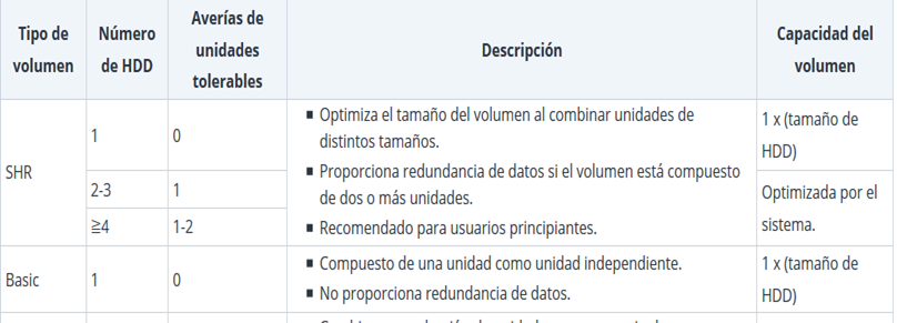 La configuració de les dades del disc modus SHR (Synology Hybrid RAID) es la genuïna i propietària de Synology, mentre RAID (Redundant Array of Independent Disks) és una configuració estàndard que es pot muntar en qualsevol equip.