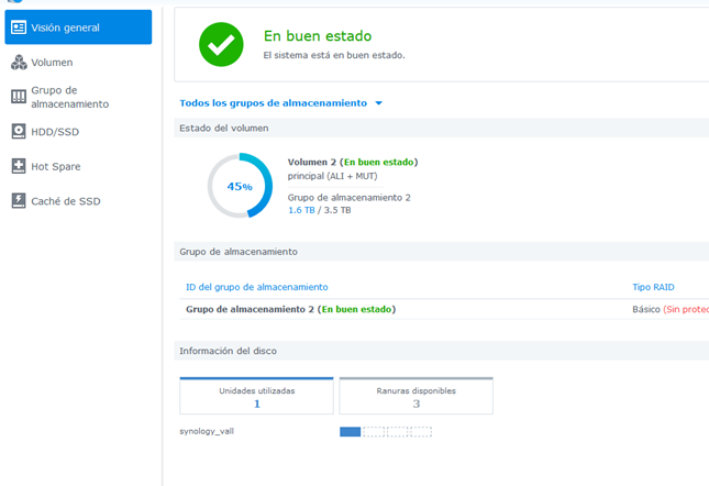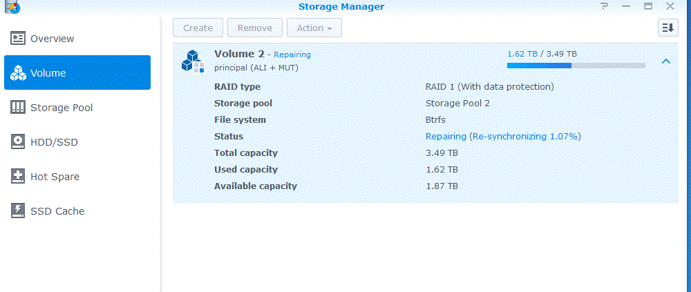 Observacions : No apagueu el NAS quan el volum estigui degradat ni durant el procés de reconstrucció. En cap cas segueixi treballant amb la informació o afegeixi nous arxius al seu volum per no retardar el temps de reconstrucció.